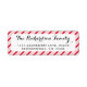 Send jolly holiday wishes to family and friends with this festive red and white peppermint candy cane stripes return address label. Add a touch of Christmas cheer to outgoing mail, and enjoy sending out all those Christmas cards. Perfect for holiday event invitations as well!