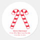 Christmas candy cane red white custom name favour classic round sticker