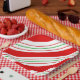 This pretty paper plate features a fun Christmas design of diagonal stripes in candy cane colours of red, white and green. Search ID259 to see other products with this pattern.