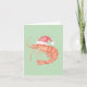 Hand painted prawn wearing a Santa hat on a green background.