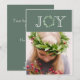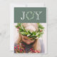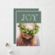 Festive "Joy" typography with faux eucalyptus wreath for the letter "O". Add your personal photo to complete this holiday card. Add your own holiday sentiment and names on the reverse side. Pattern on front is carried over to the back of this card.