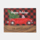 Welcome your guests with this red buffalo plaid mat featuring a watercolor car with a Christmas tree. Easy to personalise with your own message and family name.