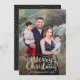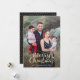 Modern photo card design with hand drawn script in faux gold and gold accents.