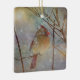 This beautiful ceramic ornament features a female cardinal trying to stay warm in a snowstorm.