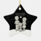 A quality product. Very nicely printed which wraps around the edge with a plain back. Not at all to heavy to fall off that tree branch. The printing seems crisp and robust enough to last for many a Christmas.