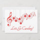 Pretty christmas ball ornaments covered in red lace with red bows and silver trimming on a white background grace this unique Christmas caroling party invitation with a moving musical staff covered in red lace. The beautiful vintage lace motif of interlacing stars and flowers is reminiscent of the ancient craft of lace-making. Party information may be personalised in the template provided.
