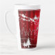 Festive white Christmas carriages with reindeer and Christmas trees on a red background
