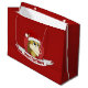 Gift Bag with an illustration of a cute lion with red Santa cap; great decoration for Christmas holidays, editable template design with custom field for your own text, illustrated by Radka Kavalcova