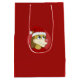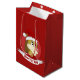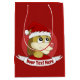 Gift Bag with an illustration of a cute lion with red Santa cap; great decoration for Christmas holidays, editable template design with custom field for your own text, illustrated by Radka Kavalcova