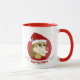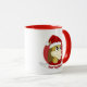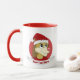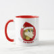 Christmas mug with an illustration of a cute lion with red Santa cap; great decoration for your Christmas, editable template design with custom field for your own text, illustrated by Radka Kavalcova