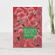 A flamboyance of pink flamingos celebrate on the front of the card. Inside, a black cat joins the festivities.