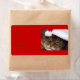 Christmas gift tag has "Lita", a brown tabby cat wearing a Santa hat. Lita looks like she is smiling in the picture. Cute gift tag for animal lovers.