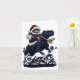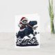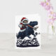 Christmas Cat In Santa Hat Holding A Gun And Dinos Card