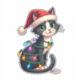 Christmas Cat Tuxedo black cat xmas lights kitty c