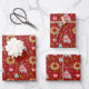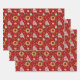 Christmas Cats and Festive Decorations Red Wrapping Paper Sheet
