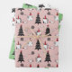 Christmas Cats Funny Pattern features an illustration of cats in Santa hats with little mice, fish, yarn and Christmas trees. An all-over print pattern on pink, green and white backgrounds. The perfect holiday giftwrap for cat lovers.