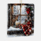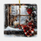 This ceramic Christmas ornament is shown with a vintage festive holiday winter scene art print.