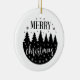 This ceramic Christmas Ornament is shown in a festive holiday forest print in a black and white colour design.