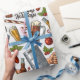 Beer icons, Christmas icons and "Cheers," "Happy Holidays," and "Joy" text on a cross-hatched white background. Available in four types of premium paper and different five sizes. Width: 30”, Length: Multiple choices from 6 feet - 60 feet. Each roll up to 15’ in length; Lengths greater than 15’ shipped as multiple 15’ rolls. 6' roll wraps 3 shirt-sized boxes. Printed in USA