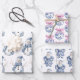 Christmas Chic Blue White Snowman Wrapping Paper Sheet