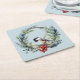 Christmas Chickadee Bird in Wreath Art Square Paper Coaster