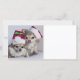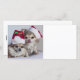 Photograph of longhair chihuahuas wearing Christmas hats.
