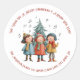 Add this Cute Christmas Children Singing Festive Return Address Classic Round Sticker to your Holiday Christmas Mailings. These festive Stickers are designed with three children dressed in warm colorful coats singing Christmas Carols on a white background. The text includes: We Wish You A Merry Christmas and A Happy New Year!, and Your Family Name and Return Address. To personalize these stickers, simply insert your Name and Address into our easy template, replacing the sample.