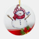 Christmas Circle Ornament, Snowman Ceramic Tree Decoration