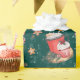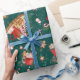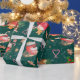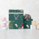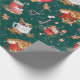 This cheerful Christmas pattern features red and white mugs full of cocoa and marshmallows in watercolor on a dark green background. The pattern is sprinkled with Christmas cookies in the shape of gingerbread men and snowmen and striped candy canes. The wrapping paper is perfect for your Christmas presents or a winter birthday gift.