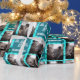 Christmas Collage Family Photo Geometric Turquoise Wrapping Paper