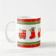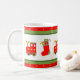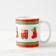 Creative Christmas holiday mug featuring toy train and Christmas stocking. To personalise add name.