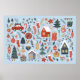 Christmas collection of decorative winter elements poster