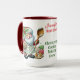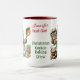 This super cute coffee mug features two whimsical Christmas gnome Chefs. They're all decked out in their holiday finest and have been baking Christmas cookies and Gingerbread houses. In the center you personalize it with your name and then it says Head Chef - Christmas Cookie Baking Crew in red and green. The inside is shown in red but there are other colors available as well as other styles of mugs.