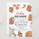 The cookie exchange invitation depicts a gingerbread guy, a gingerbread home, and a Christmas tree biscuit adorned with a gingerbread stocking."Christmas Cookie Swap" is written in huge beautiful calligraphy. There is enough of template material for you to explain your party concept.