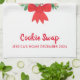 This Cookie Swap kitchen towel is decorated with a watercolor wreath of Christmas cookies and seasonal greenery.