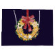 Christmas Cookie Wreath with Navy Blue Background Large Gift Bag