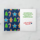 Fun Christmas card for holiday baking featuring chocolates, frosted cookies, gingerbread man, cupcake and cinnamon roll, personalised with your text on the front and inside, perfect for gifting your list with Christmas cookies or other sweets.
