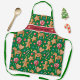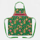 Apron with a festive Christmas cookie and candy pattern on green with red and white contrasts. Changeable text that reads "Christmas Cookies for Santa" can be edited if desired. Choose the colour of your ties. Coordinates with a kitchen towel and other designs in the Christmas Kitchen collection at Pinkladybugs on Zazzle.