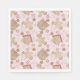 This adorable Christmas disposable napkin features a pink and white striped background with gingerbread boy, girl, and house cookies, as well as chocolate chip cookies, star sugar cookies, peppermint candies, and candy canes.