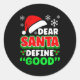 Christmas Costume Dear Santa Define Good Funny Classic Round Sticker