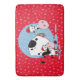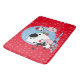Country Christmas cows on a red bathmat with white snowflakes