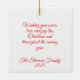 at christmass as a hanging decration for the chritmass tree.. its white porcline or cramic but very well made with added photo on one side.. also has a lovley red bag to keep it in.. execlent printed text in bold and black stands out well aganst the blue background of the photo.