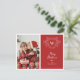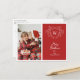 Spread Christmas cheer with this elegant and modern Christmas postcard featuring a white line art mistletoe design framing a classic crest easily customisable with your initials over a festive red background. Easily customise this holiday postcard by uploading one of your favourite family portraits. The back of the postcard is fully customisable, allowing you to add a personal message to your friends and loved ones.