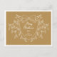 This festive design features a delicate and modern white line art mistletoe framing a sophisticated crest on a classy golden background. Easily customise the wording "Merry Christmas" inside the crest, along with your family name to add a personal touch. The back of the postcard allows you to add a personalised message for your loved ones.
