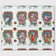 CHRISTMAS CROWNS WITH HOLLY BERRIES /MUSICAL SANTA WRAPPING PAPER