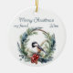 Christmas Custom Friend Chickadee Bird Wreath Ceramic Tree Decoration