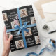 Christmas Custom Photo Family Name Black Wrapping Paper