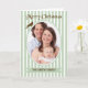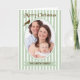 Celebrate Christmas with this vintage inspired, green striped holiday card. Add your photo and easily change the name at the bottom. A bird is resting on the picture frame, giving it a retro feel.