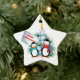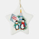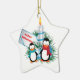 Christmas Cute Penguins And Candle custom ornament. Two cute penguins with scarves and behind them a candle and pine needles.