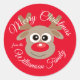 Christmas Cute Reindeer Cartoon Red Classic Round Sticker
